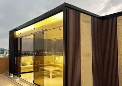 لا تدع برودة الطقس تمنعك من الاستمتاع بإطلالة حديقتك. يصمم مبتكر الظل جلسات شتوية وملاحق زجاجية أنيقة توفر لك عزلاً كاملاً عن البرودة والأمطار، مع إطلالة بانورامية ساحرة، لتستمتع بأجواء حميمية ودافئة مع عائلتك وضيوفك.