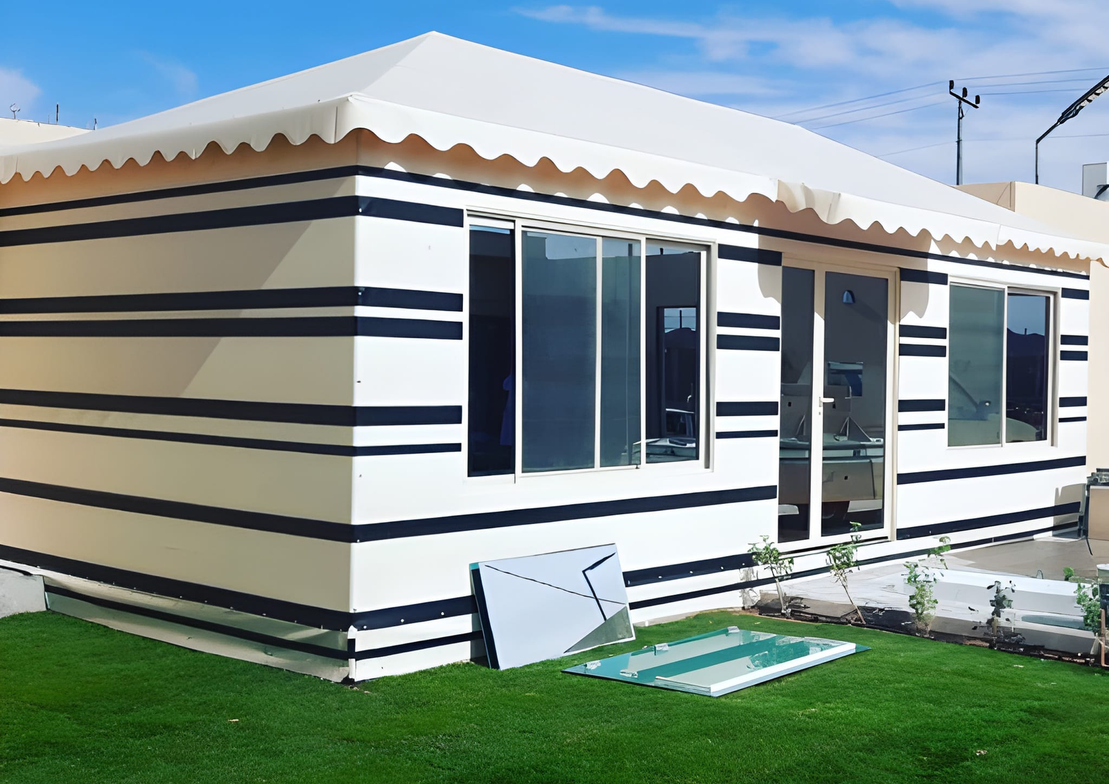 نجسد كرم الضيافة العربية في أبهى صورها. مبتكر الظل يبني بيوت شعر ومجالس ملكية بهياكل متينة وعزل كامل، مع ديكورات داخلية فاخرة من أفضل أنواع الأقمشة وأنظمة إضاءة ساحرة، لنصنع لك مساحة استقبال استثنائية تفخر بها.