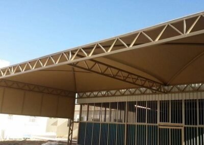 لأننا نؤمن بأن بيئة التعلم يجب أن تكون آمنة ومريحة، فإننا في “مبتكر الظل” نولي اهتماماً خاصاً بتصميم مظلات المدارس. نقوم بتغطية ساحات اللعب والمناطق المفتوحة باستخدام مواد غير قابلة للاشتعال وصديقة للبيئة، تضمن توفير أقصى درجات الحماية من أشعة الشمس. تصاميمنا تهدف لخلق مساحات واسعة من الظل البارد الذي يشجع الطلاب على التفاعل واللعب في بيئة صحية وآمنة. لضمان سلامة وراحة أبنائكم، يمكنكم التواصل معنا على 0531925122.